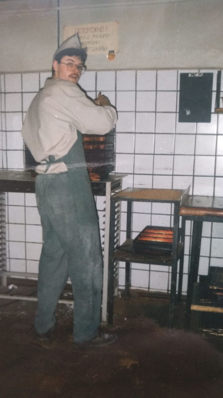 В то время появились мини-пекарни, когда увидел предложение о работе, нисколько не сомневался. Взяли грузчиком, потом пекарем. Работа тяжёлая, два через два, по 12 часов, платили немного, но хлеб всегда дома был. Иногда кто-нибудь из пекарей не выходил, приходилось работать и по 24 часа.